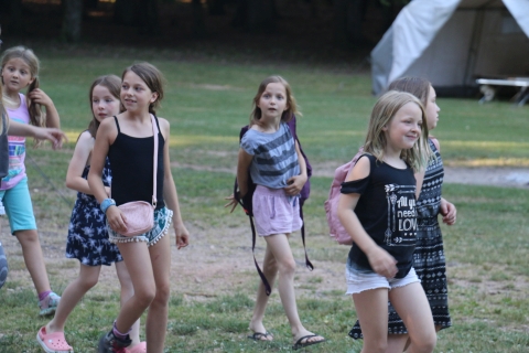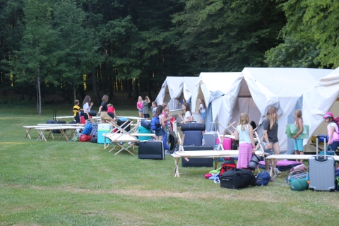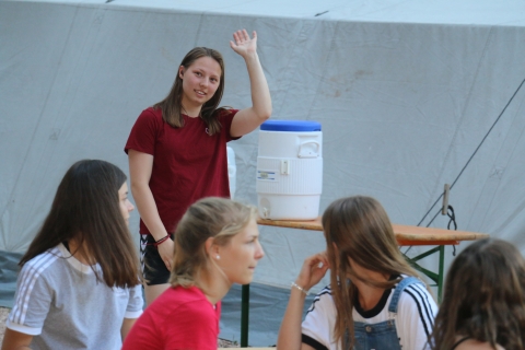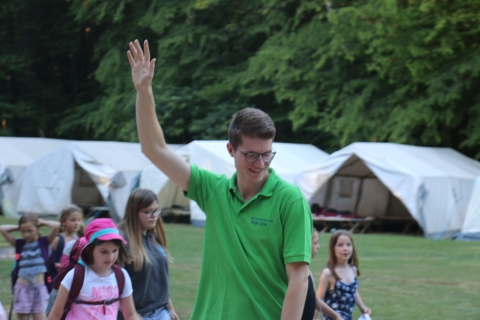 Nach einer kurzen Begrüßung wird in die Zelte eingezogen, der Zeltplatz erkundet und es geht nach dem Abendessen zum Begrüßungsabend.