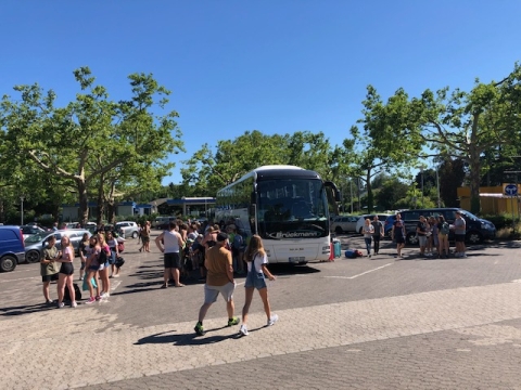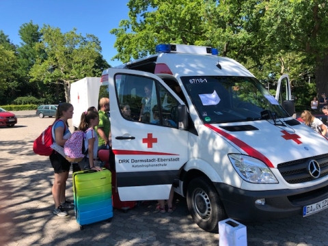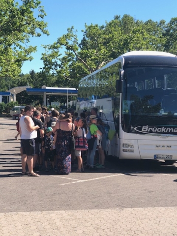 Gespannt stiegen die fast 70 Teilnehmerinnen und Teilnehmer in Darmstadt in die Busse ein. Zwei Wochen Spiel, Spaß und Spannung warten auf die Kids.