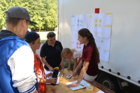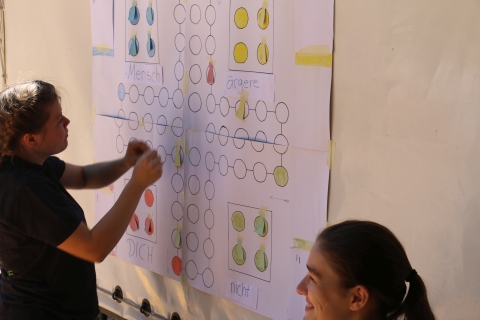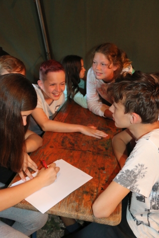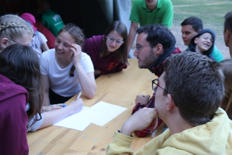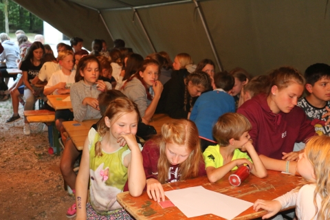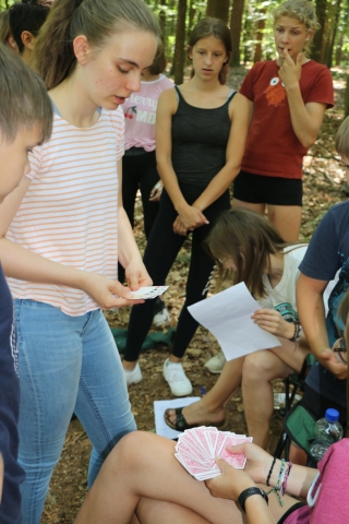 Unter diesem Motto startete heute das erste Ganztagesgeländespiel. Großwürfelmeisterin Darleen organisierte die Aktion rund um den Zeltplatz. So mussten an verscheidenen weit entferneten Sationen die Gruppen Punkte sammeln um auf dem großen Spielplan vorran zu kommen.