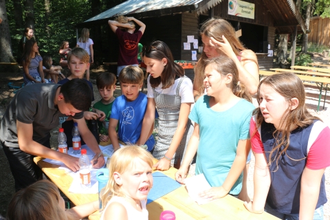 Das Zeltlager ist auf Edelsteinjagd! Händler mit Edelsteinen aus den Oberthaler Edelsteinminen sind überall im Wald versteckt. Sie werden euch für kleine Aufgaben mit verschiedenen funkelnden Edelsteinen belohnen! Schnappt euch die Edelsteine und bringt sie zur Hauptstation zurück. Die Hauptstation sammelt alle Edelsteine und belohnt euch dafür. Vor allem wird belohnt, wenn ihr verschiedene Edelsteine auf einmal liefert! Aber passt auf. Im Wald lauern auch Räuber, die euch die Edelsteine klauen wollen. Lasst euch also nicht erwischen!