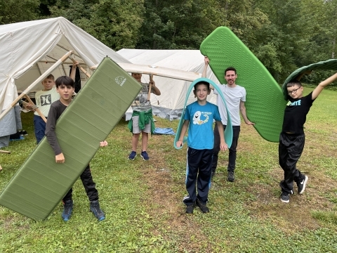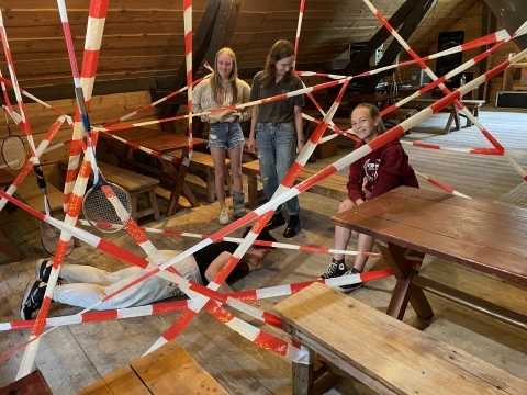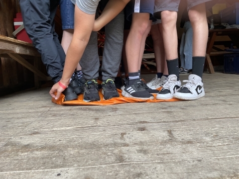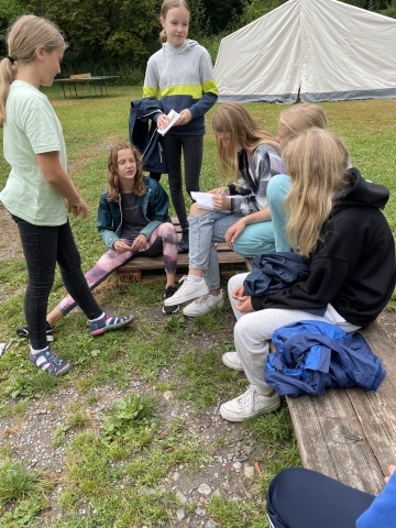 Erster Tag auf dem Zeltplatz, nach einer regnerischen Begrüßung wurde das Wetter besser und besser. Heute steht das Kennenlernen auf dem Programm. Mit der neuen Idee von Robinson Crusoe wurden die Teilnehmenden auf eine Reise mit vielen unterschiedlichen Stationen geschickt. Hier waren Geschicklichkeit und Kreativität genauso gefragt, wie die Kunst des Dichtens. Und nicht zu vergessen die Kennenlerndisco „music on demand“