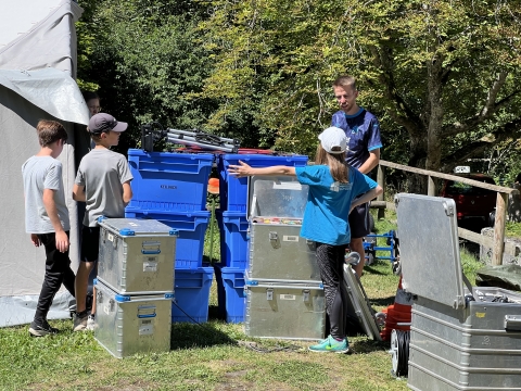 Das große Abbauspiel ist in vollem Gange. Der größte Teil des Lagers wird abgebaut und im LKW verstaut. Alle helfen mit für "ROOOOHHSTOFFFFE" um auf der Insel Catan Siedlungen, Straßen und noch einiges mehr zu bauen.