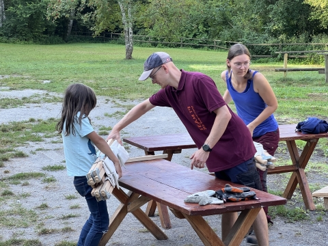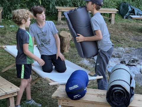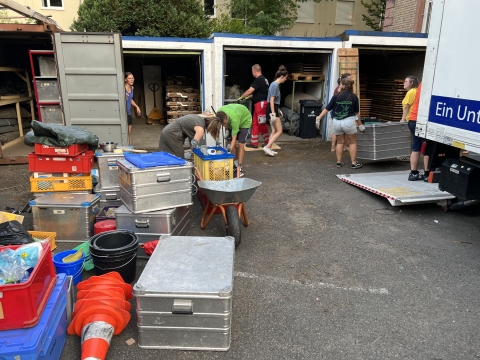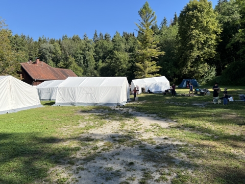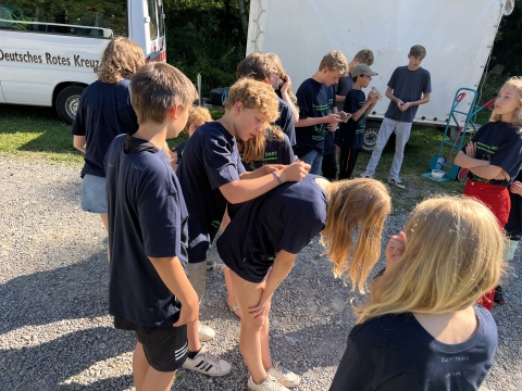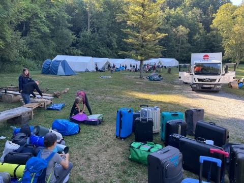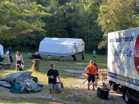 Nun ist es soweit. Der letzte Tag bricht an. Erst müssen die Feldbetten und das Gepäck verstaut werden, bevor es zum Frühstück geht. Aufräumen des Platzes und der Abbau der Zelte steht dann an. Zwischendurch verabschieden sich die TeilnehmerInnen und Teamer, Unterschriften auf Shirts und der Austausch von Adressen sichern den Kontakt für nach dem Summercamp.
