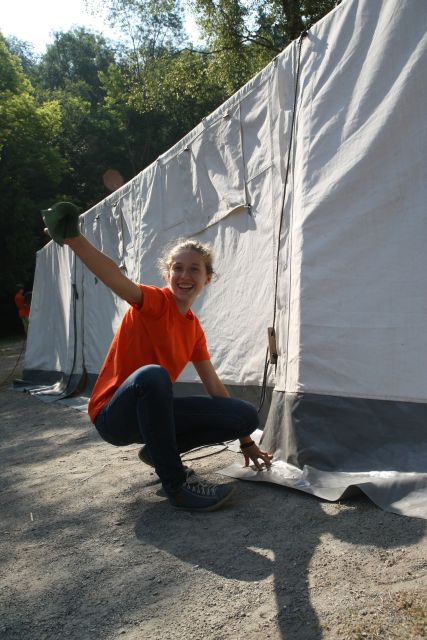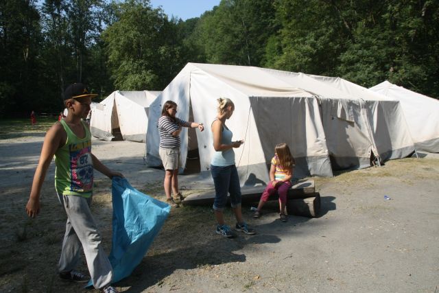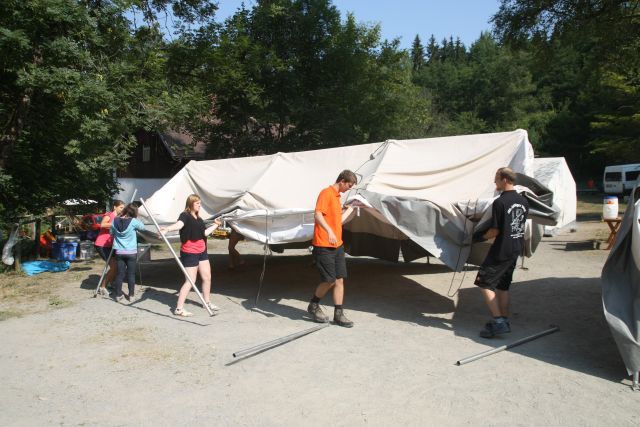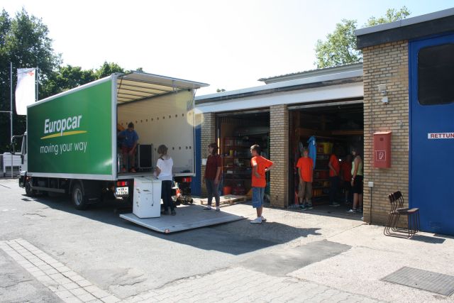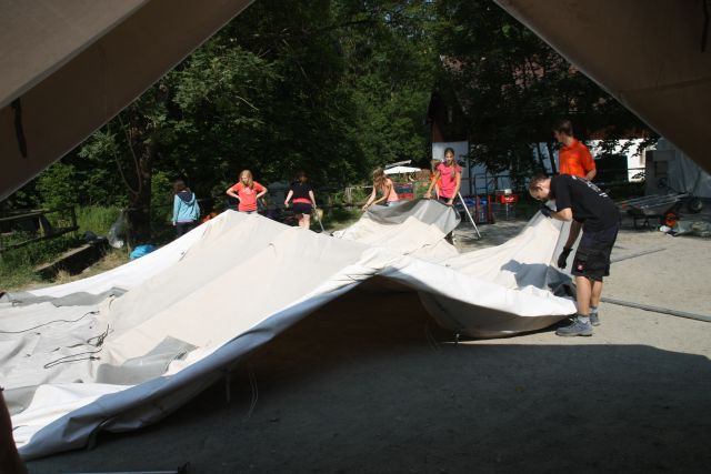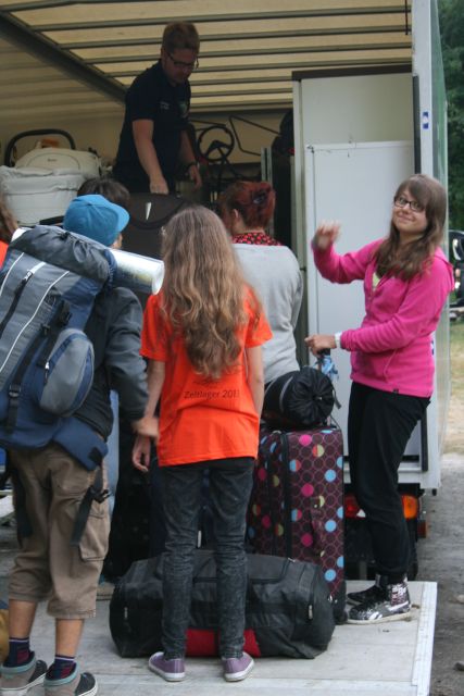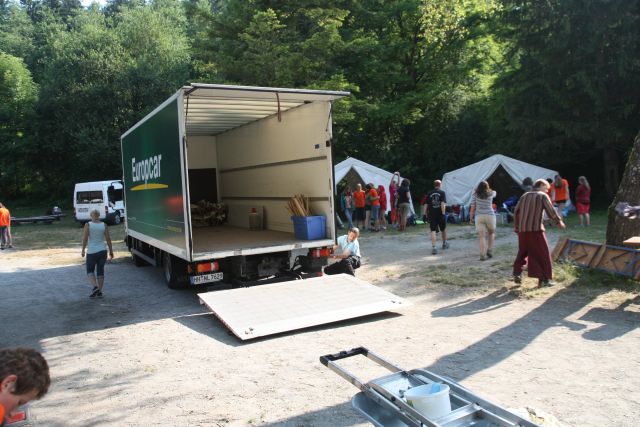 Nach 15 durchweg schönen und abwechslungsreichen Tagen fallen die Teilnehmerzelte und der Platz wird aufgeräumt. Um 9.30 Uhr fährt der erste LKW mit den polnischen Gästen nach Darmstadt - der zweite folgt um 11.00 Uhr.