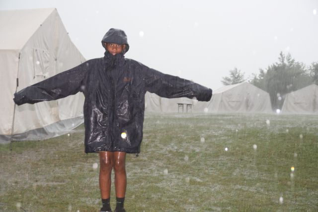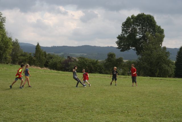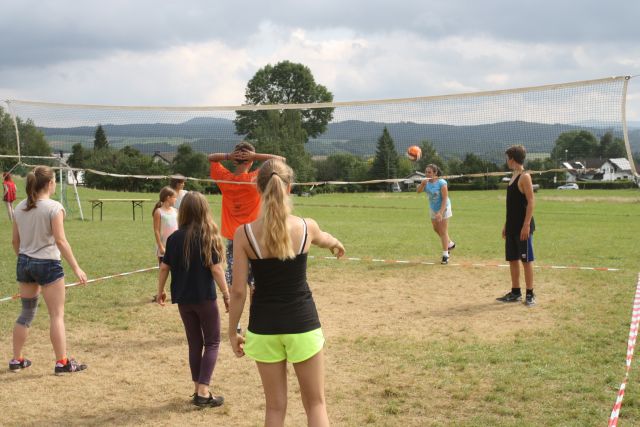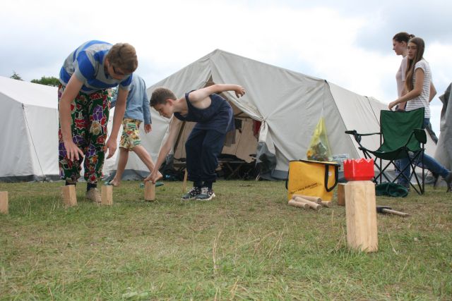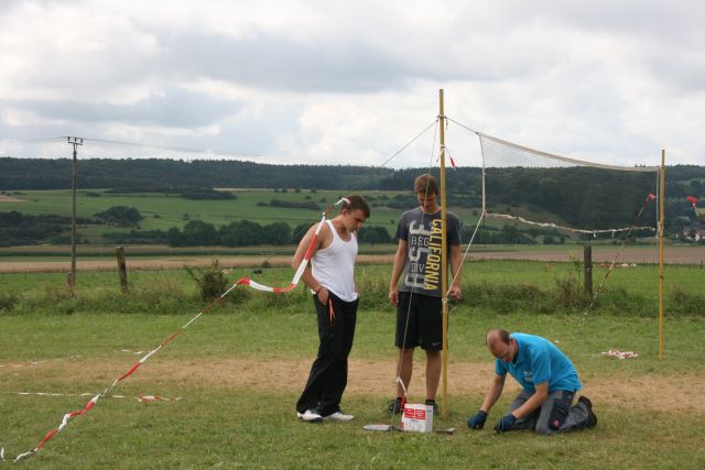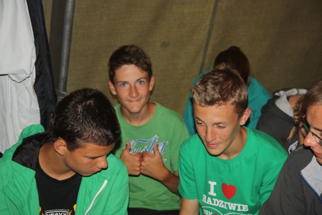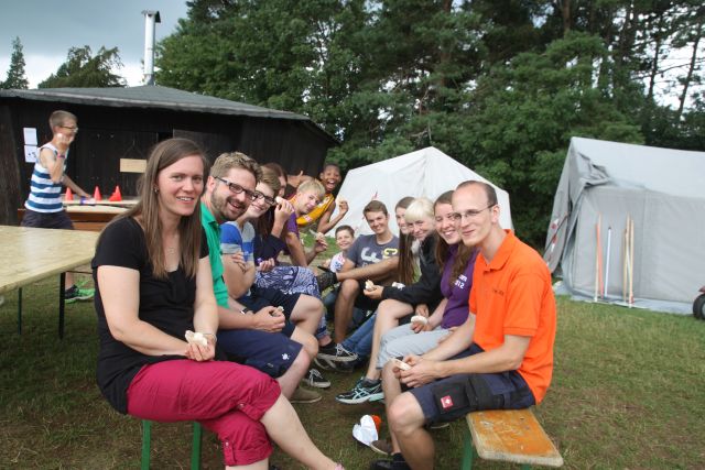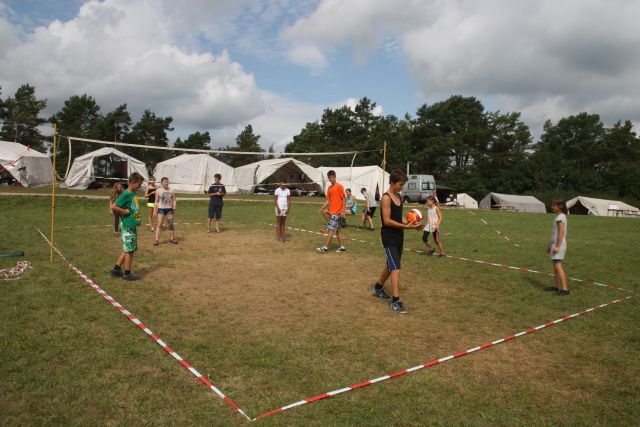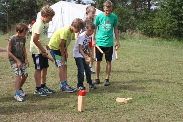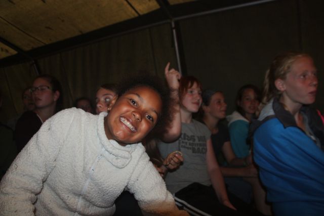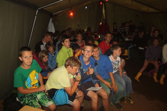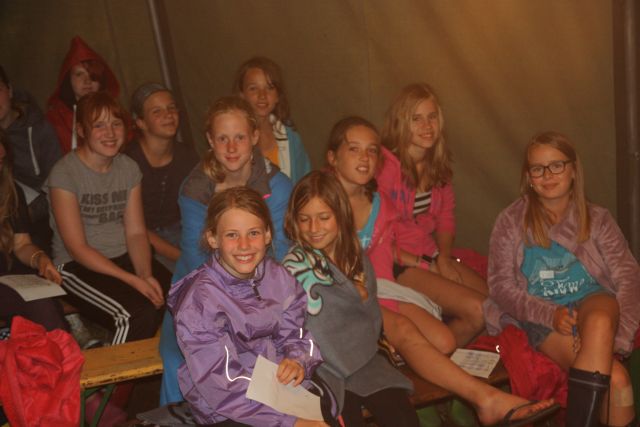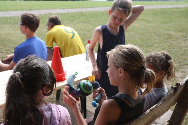 Der Sporttag, an dem die Gruppen in verschiedenen Sportarten, wie Brennball, Fußball,Volleyball oder Wikingerschach gegeneinander antreten, wurde durch einen Regenschauer leider abgebrochen. Nun mussten die Zelte regenfest gemacht werden. Koffer auf die Betten, Klamotten zusammensammeln und Folien hochklappen, damit das Wasser drunterdurchlaufen kann.