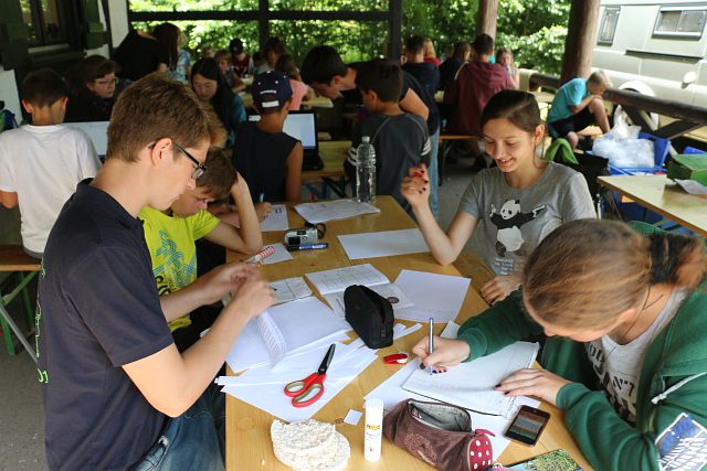 Sockentiere, Kletterwald, Zumba, Zeltlager Zeitung und Keilrahmen standen für die Teilnehmerinnen und Teilnehmer zur Auswahl. Außerdem entstand man heutigen Samstag in den Summercampstudios mit Regisseur Aron ein neuer Krimi – Tatort Ludwigswinkel.