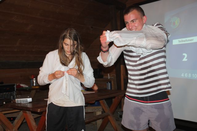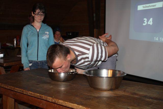 Am Abend stellte sich das Team den Teilnehmern in "SCHLAG DEN LUKASZ". In 10 Minispielen trat Lukasz gegen alle Zelte an ... ... dieses Jahr ging es gut für die Teilnehmer aus. Eis für alle war der Einsatz. Eine willkommene Erfischung für kommenden Montag.