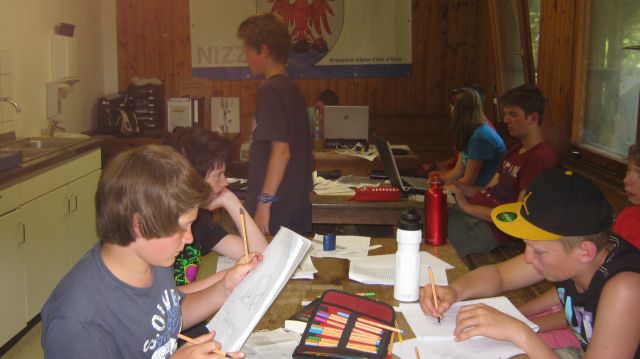 Auch am dritten Projekttag standen neben der Zeitungsgruppe, Ausflügen in den Kletterwald und das Ravensburger Spieleland, Sport und Kreativangebote zur Auswahl. Nach dem Filmpalast am Abend ging es in den Wald auf einen Parcours um den Irrlichtern zu folgen ...