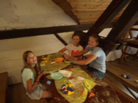 Bei den kreativen Projekten wurden Kerzenhalter aus Beton gegossen. Fadenbilder gestaltet und Taschen bedruckt