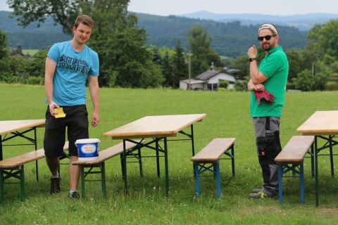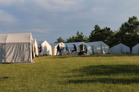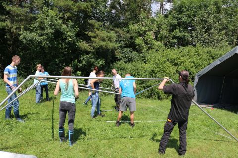 Als in der Nacht vom Mittwoch auf Donnerstag zwei voll geladene LKW auf dem Zeltplatz in Dollendorf eintrafen war klar, das JRK Darmstadt ist wieder unterwegs. Die Vorhut mit 13 hoch motivierten Teamern hatten die Aufgabe bis Freitagabend für 75 Kinder und Jugendliche aus Darmstadt und Umgebung die Zeltstadt aufzubauen.