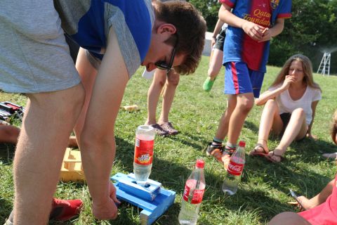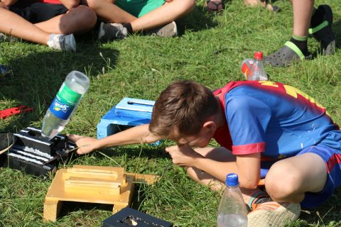 Wasserraketen waren der Renner mit Flo. Mit etwas Holz einer PET Wasserflasche und einem Fahrradschlauch sowie einer Luftpumpe wurden Abschussrampen gebaut. Leider war der Start bei der ein oder anderen Rakete etwas schwierig.
