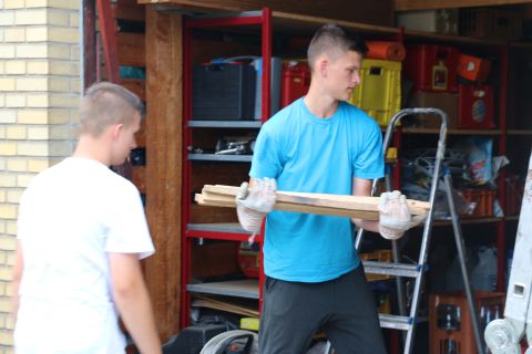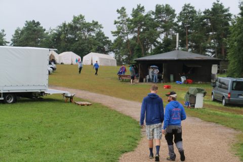 Der Himmel über Schloßthal weint. Der Abbau der letzten Zelte findet im Regen statt. Alle Teilnehmer und Teamer packen mit an. Die Koffer und Taschen werden untergestellt und der Platz auf- und abgeräumt.