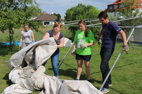 So entsteht in Bickenbach am Tag nach dem Zeltlager durch das Engagement des Teams nochmal für vier Stunden eine kleine Zeltstadt.