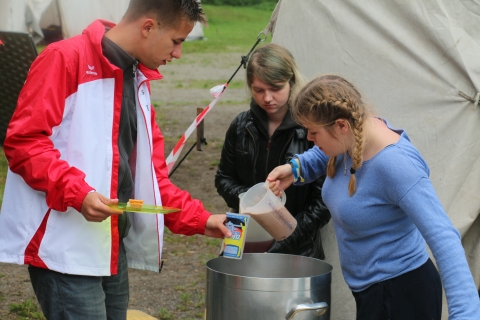 Traditionell steht der erste Tag im Zeichen des Kennenlernens der anderen und des Geländes. Viele Aufgaben mussten also die Teilnehmer zeltweise bewältigen. Eine Schnipseljagd durch das Gelände erhöht die Ortskunde.