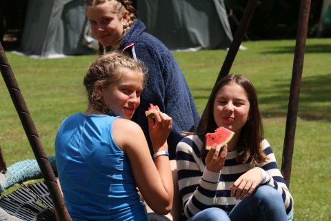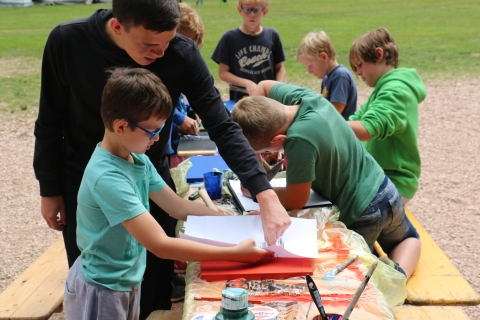 Heute ging es für die Ausflugsgruppe mit Dany und Timo in das Prähistorikum (Dinomuseum). Für die Sportbegeisterten ging es nach einem Aufwärmtraining zum Aufbau des Volleyballfeldes und natürlich zu einem Spiel. Für die WM bot Vanja an sich ein entsprechendes Trikot zu gestalten. Lenny gestaltete mit den Teilnehmern Nagelbilder und Lena leitete die Redaktionsgruppe für die Zeitung.