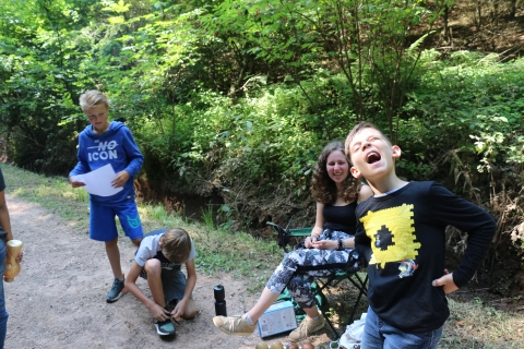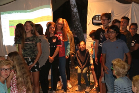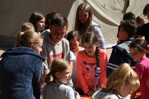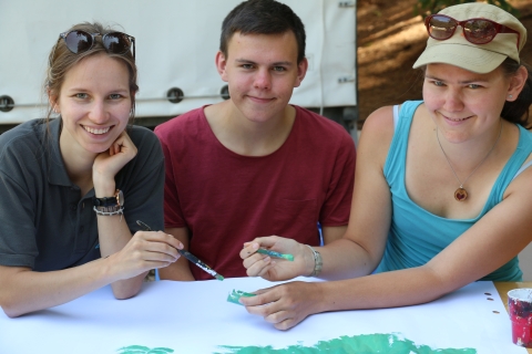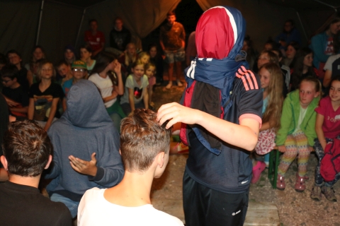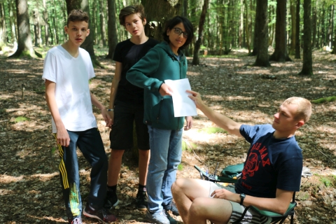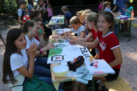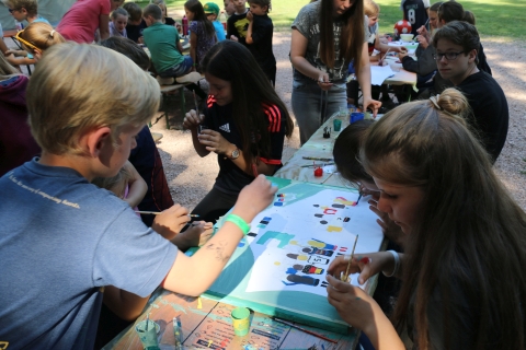 Eure Aufgabe besteht nun also darin, euch Farben an Stationen im Wald zu verdienen um diese gemeinsam in der Gruppe für euer Kunstwerk zu benutzen. Neben dem Interesse an der Fußball-WM und dem Zeltlager ist die Jury auch Fan von vielen verschiedenen Farben und Kreativität.