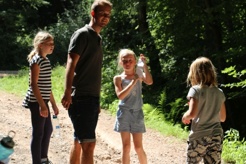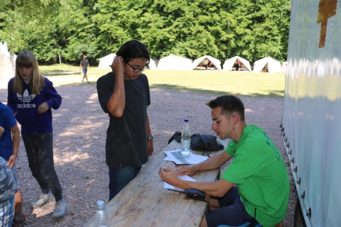 Eure Aufgabe besteht darin, die Lebensmittel, der (im Wald/ auf dem Zeltplatz) angeboten wird, zu den (Stationen im Wald/ zum Zeltplatz) zu bringen. Ihr könnt euch dabei aussuchen, ob ihr die Steuern bezahlt und somit am Ende einen Teil eures Profits verliert oder versucht, die Kontrollen zu umgehen. Solltet ihr von einem der Kontrolleure erwischt werden, müsst die Lebensmittel abgeben und macht keinen Profit. Außerdem könnt ihr euch überlegen, die Lebensmittel ohne eine zeitliche Frist zu liefern oder die Lebensmittel innerhalb eines zeitlichen Rahmens abzuliefern - auch dies bringt am Ende mehr Geld.