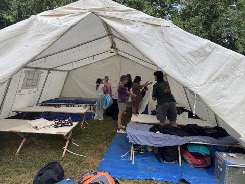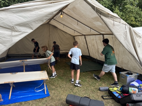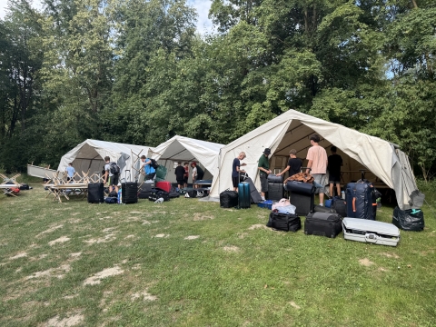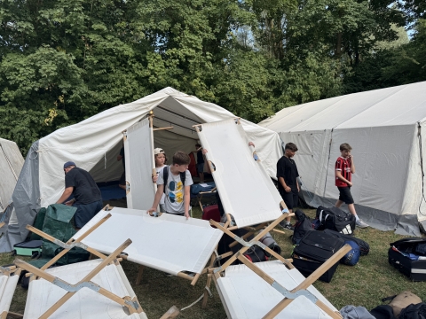 Nach gut vier Stunden Fahrt kam die Gruppe ohne Staus in Tapfheim auf dem Platz an. Ausladen, im Zelt einziehen und auspacken.