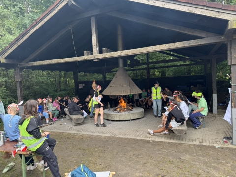 Sport am Morgen, vor dem Frühstück. Aber das gab es gar nicht - um 9:32 gab es Mittagessen ????? Mit MisteryBroten !! Und dann Lagerfeuer ??? Alles durcheinander.