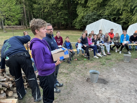 Abends am Lagerfeuer gab es die ersten Spielauswertungen und Preise.