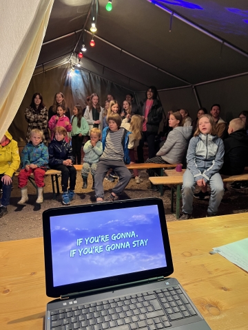 Am Abend fand sich die Gruppe zum Karaokesingen zusammen.