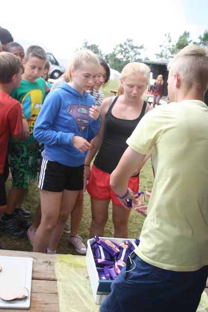 Der Sporttag, an dem die Gruppen in verschiedenen Sportarten, wie Brennball, Fußball,Volleyball oder Wikingerschach gegeneinander antreten, wurde durch einen Regenschauer leider abgebrochen. Nun mussten die Zelte regenfest gemacht werden. Koffer auf die Betten, Klamotten zusammensammeln und Folien hochklappen, damit das Wasser drunterdurchlaufen kann.